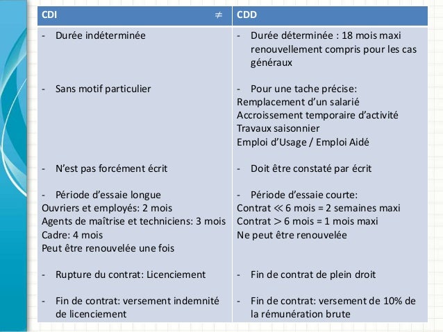Mais sa durée est également limitée en fonction de la durée du. En pratique, un CDD ne peut excéder une durée maximale de mois lorsqu’il est à objet défini. Et il ne peut excéder une durée de mois dans le cadre d’un accroissement temporaire d’activité et d’un remplacement de salarié de date à date (sauf dispositions contraires).